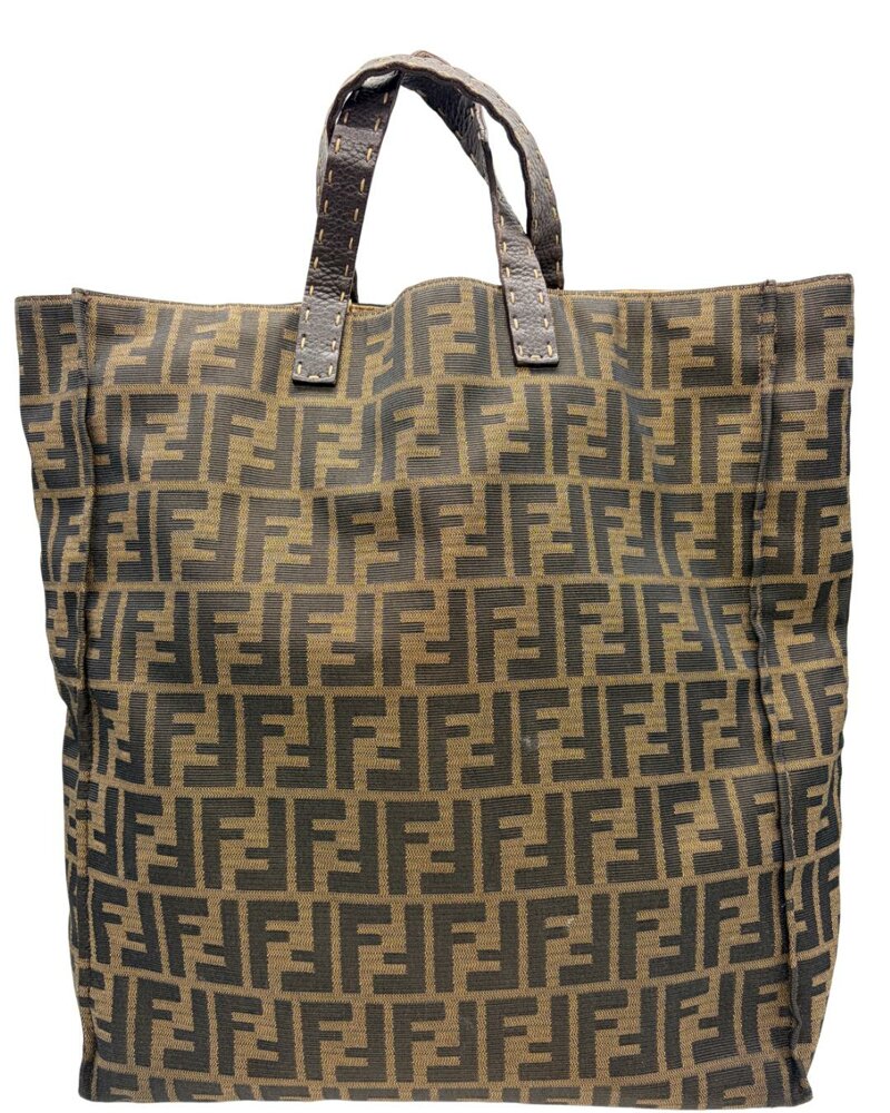 Borsa a mano shopping Fendi Selleria realizzata in tela morbida logo con manici in pelle marrone.
